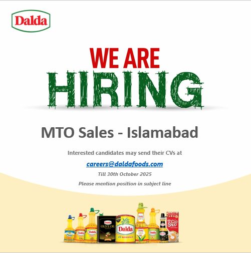 Dalda Foods Limited Hiring “MTO Sales” at Islamabad || Oct-2025