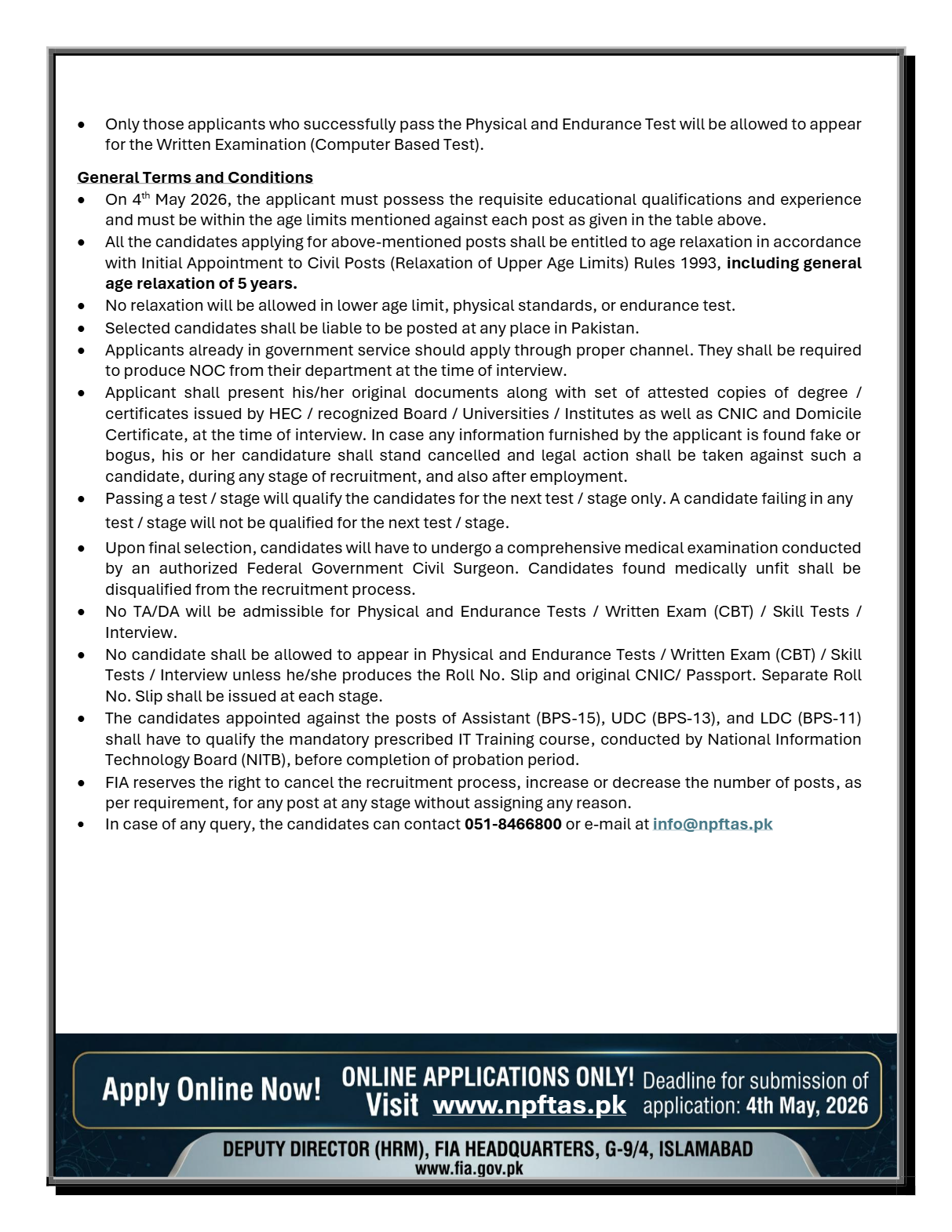 Applications are invited from suitable candidates across Pakistan for vacant positions in the Federal Investigation Agency (FIA). This is an opportunity to build a distinguished career with Pakistan’s premier law enforcement agency, where merit and professional excellence guide our mission to uphold the rule of law.