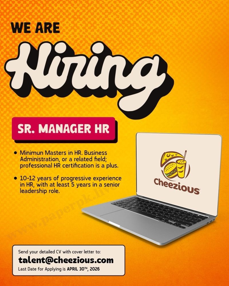 Cheezious Pakistan Jobs: Hiring “Senior Manager HR” || Apr-2026