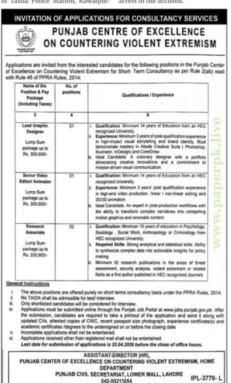 Exciting Job Opportunities at Punjab Center of Excellence on Countering Violent Extremism, Home Department, Government of Punjab