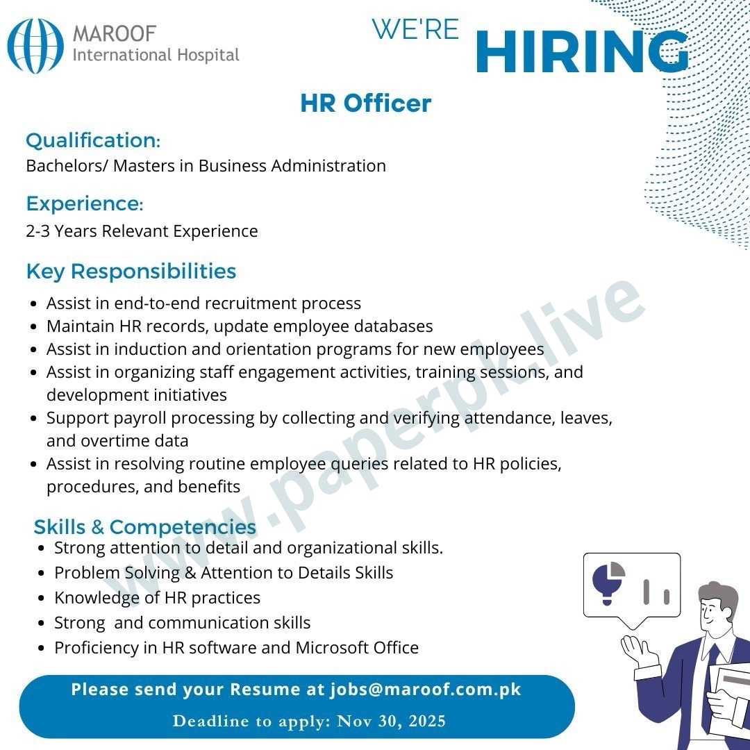 Job Opportunity at Maroof International Hospital – Hiring “HR Officer”